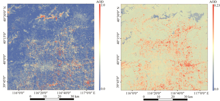 ... 气溶胶光学厚度(Aerosol Optical Depth, AOD)作为气溶胶最基本的光学特征之一,指的是沿辐射传输路径,单位截面上所有吸收和散射物质产生的总削弱 [9].它不仅仅是研究大气浊度表征大气环境质量的因子,也是大气校正中最不可或缺的参数.在大气环境监测方面,气溶胶粒子可通过促进云雾的形成、改变大气中不同化学成分浓度、吸收和散射太阳短波和地球长波辐射等方式直接或间接的影响气候变化[10,11],另外,AOD还经常与PM10、PM2.5共同作为评价大气环境质量的重要参数[12,13];在大气校正方面,AOD与水汽含量作为影响上下行透过率最重要的两个因子,对地表反射率反演精度的保持具有不可忽视的作用. ...