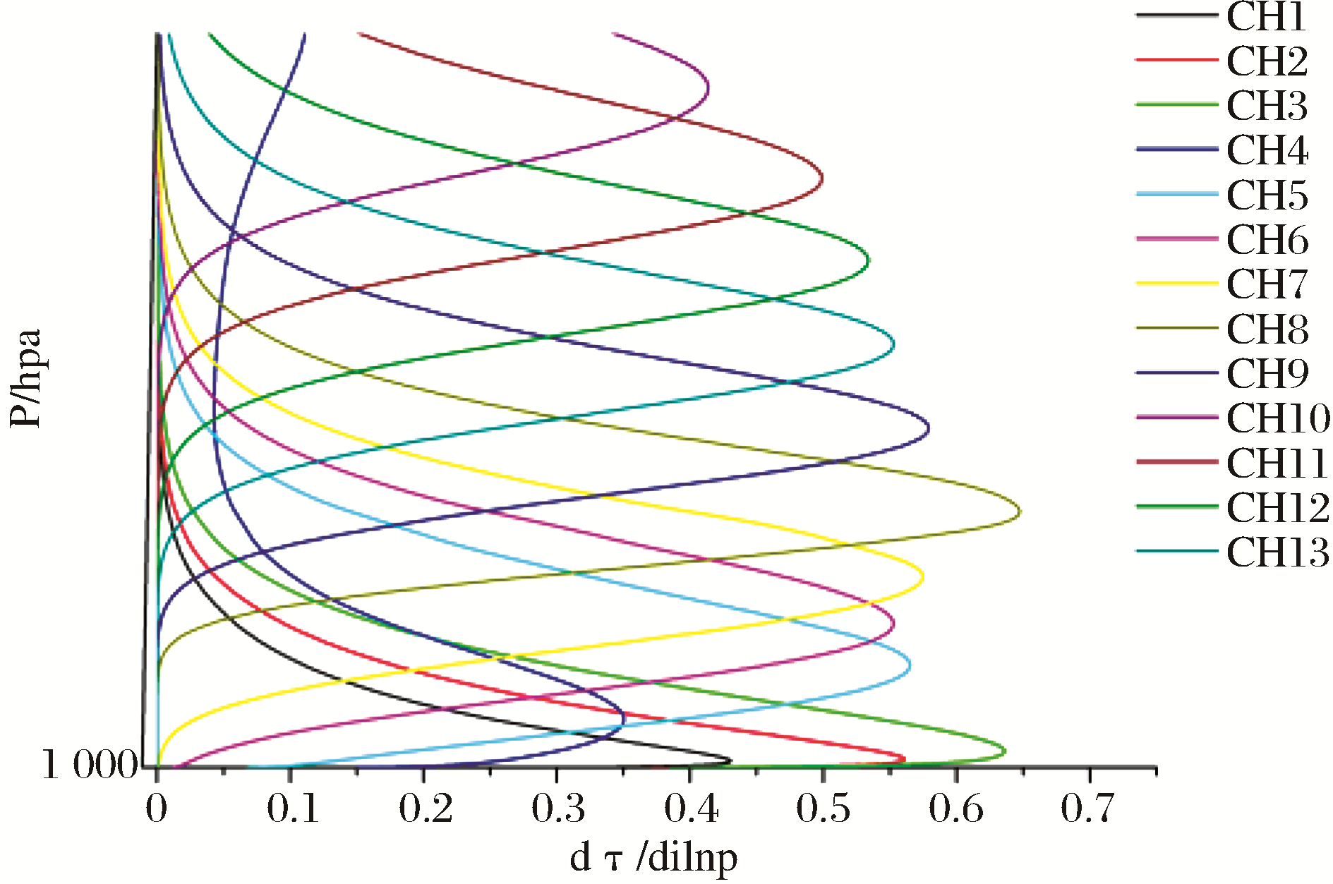 | 图2 风云三号微波温度计通道权重函数分布 |