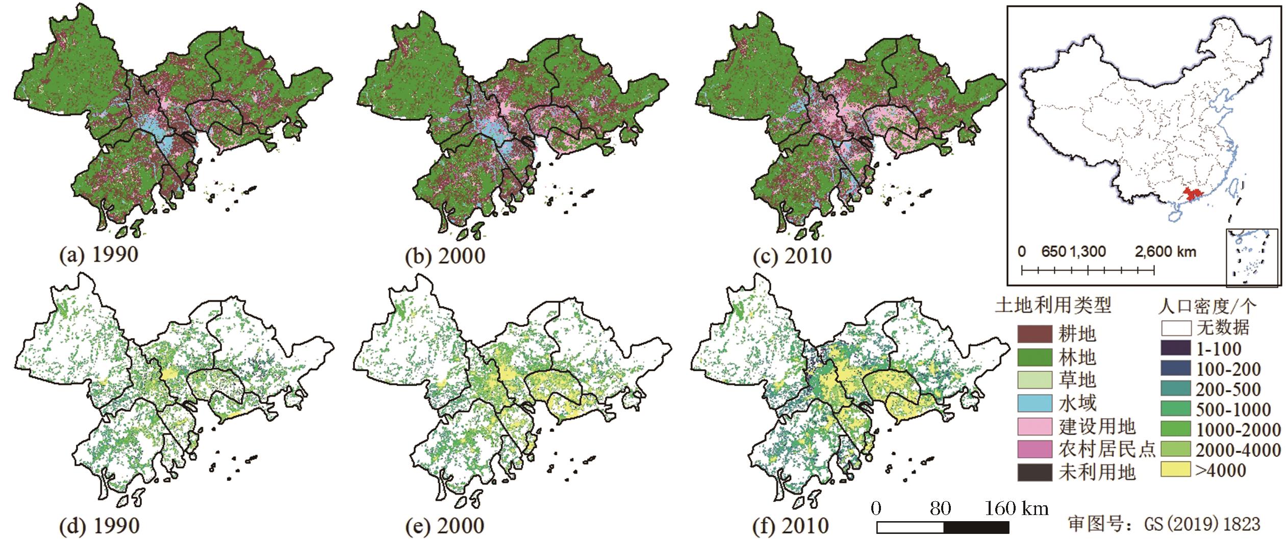 | 图2 珠三角地区土地利用类型和人口密度分布图 |