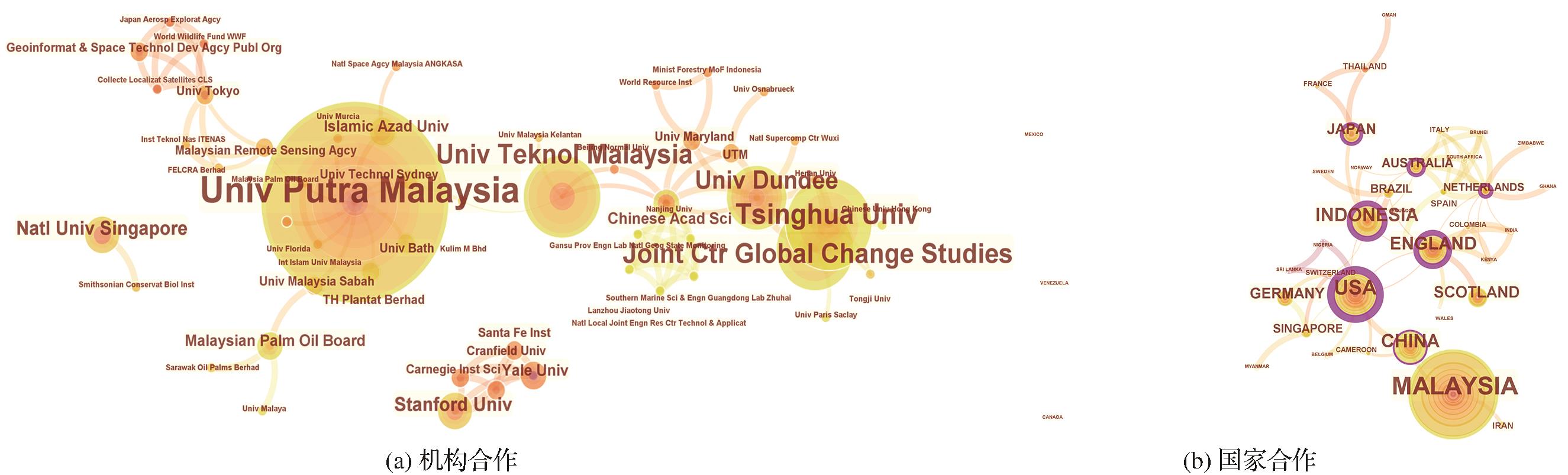 | Fig.4 Co-citation network at the institutional level and the regiona level in oil palm research |