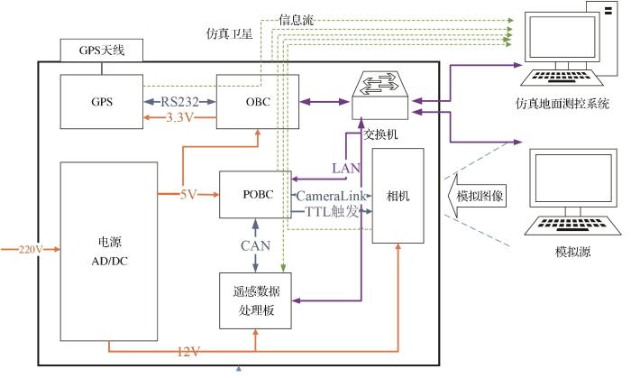 (3)星上数据处理计算机POBC:POBC对从模拟源接收的图像数据进行读取、存储以及转发,并显示到仿真地面测控系统,同时传输到遥感数据处理板进行实时星上处理测试。