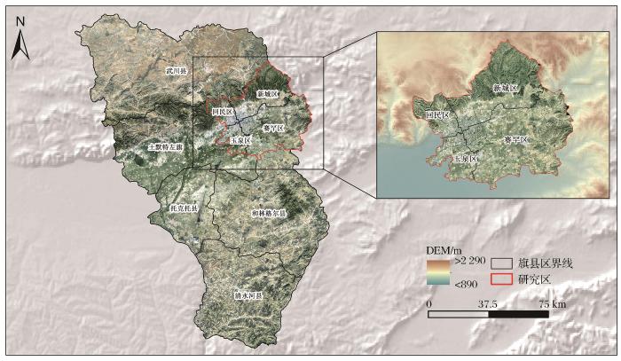 呼和浩特市地处内蒙古自治区中部,西与鄂尔多斯市、包头市毗邻,东连乌兰察布市,南抵山西省,是内蒙古自治区的首府,也是其政治、经济、文化中心。呼和浩特市作为呼包鄂榆城市群中心城市,是连接黄河经济带和亚欧大陆桥的重要纽带,也是“一带一路”建设和向俄罗斯与蒙古开放的重要节点城市。呼和浩特市共辖4区、4县和1旗。2018年呼和浩特市城市人口为218.30万人,人口城市化率达69.83%,地区生产总值为2 601.38亿元(http:∥tjj.huhhot.gov.cn/)。呼和浩特市近些年处于快速发展阶段,城市布局、产业结构都得到了提升与优化。本研究选取呼和浩特市区作为研究对象,对研究呼和浩特城市发展规律具有一定的意义。