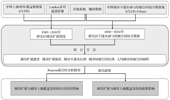 土地利用/覆盖变化是人类活动对陆地表层系统与全球环境变化影响最直接的表征形式[1 -4 ] 。城市空间是人类生产生活和经济活动发展的重要载体[5 ] 。在全球城市化迅速推进的过程中,全球城市化率从1949年的29.61%增长到了2018年的55.29%[6 -7 ] ,中国的城市化率也在70年间增长了4.6倍,近8亿农村人口向城市迁移,推动了城市的社会经济发展[8 ] 。然而,随着城市化水平的快速提升,城市空间不断向外扩展,其所带来的生态环境质量下降、空气污染、城市内涝与热岛效应、人地关系不协调等问题也不容忽视[8 -11 ] 。