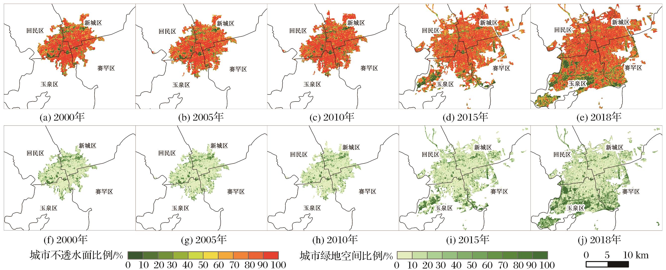图5 2000—2018年呼和浩特市区城市土地覆盖变化 |