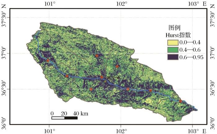湟水流域Hurst指数值分布图