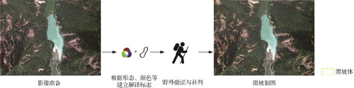 ... 目视解译是解译者依据肉眼观察遥感影像上滑坡的颜色、纹理、形态等特征,并结合其他辅助数据来分析和圈定滑坡边界[17].目视解译过程如图3所示.该方法精度虽高,但成本也高,需要解译者花费大量的时间,并且具有丰富的专业知识和判读经验[18]. ...