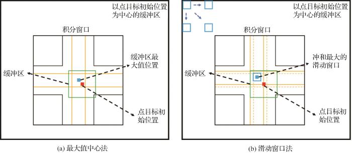 点目标初始位置定位方法及基于最大值中心法和滑动窗口法的积分窗口选取示意图