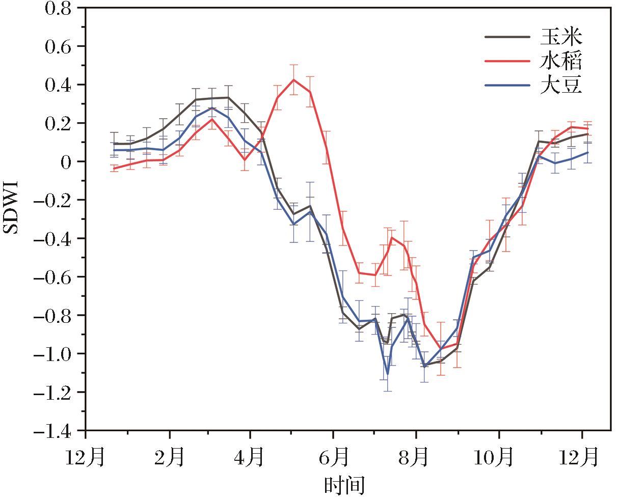 | 图5 时序SDWI曲线 (已经过SG滤波平滑处理且标注为显著置信区间) |
