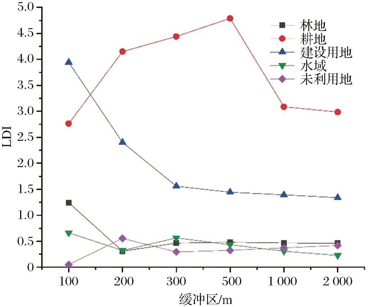 | 图5 不同缓冲区LDI值变化 |