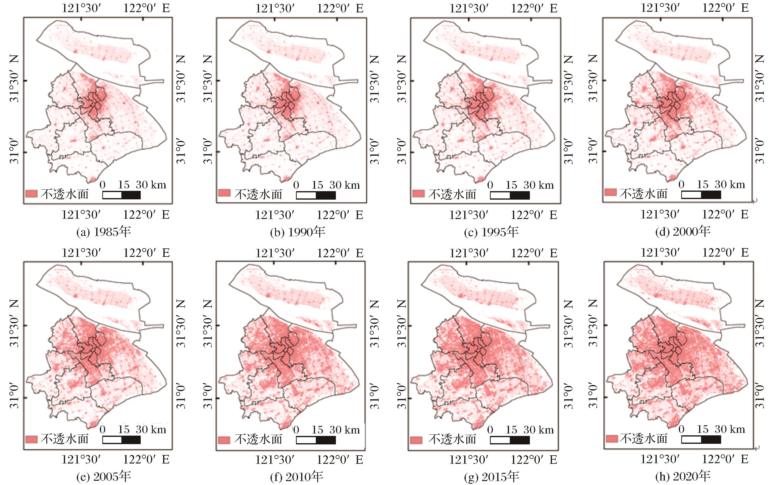 | 图2 上海市1985~2020年不透水面空间分布 |