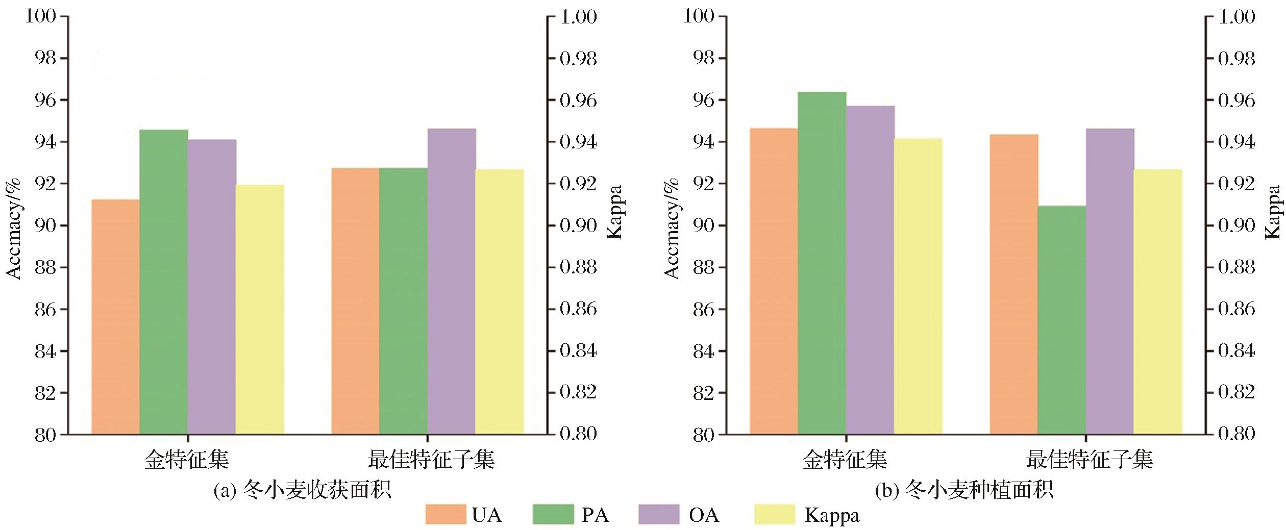 图4 冬小麦收获面积和种植面积提取精度评定结果 |