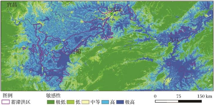 | 敏感性分级 | 研究区 | 蓄滞洪区 | |||