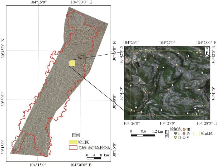 辅助数据来自“成都龙泉山城市森林公园2021年森林植被地图绘制项目(510101202101070)”进行遥感实验所获取的0.3 m分辨率的航空CCD影像,成像时间为2021年7月11日。