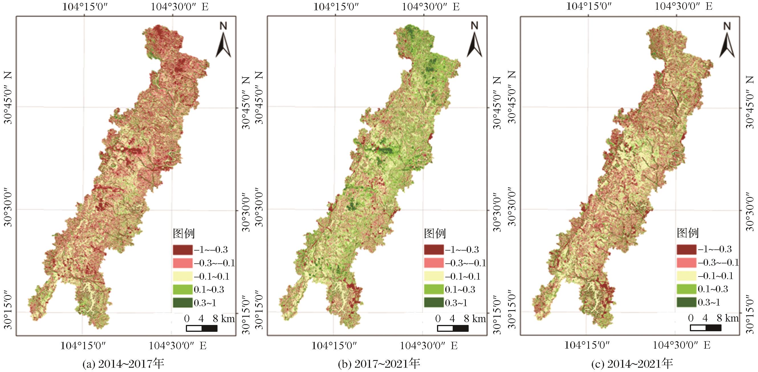 图4 研究区植被覆盖度变化空间分布图 |