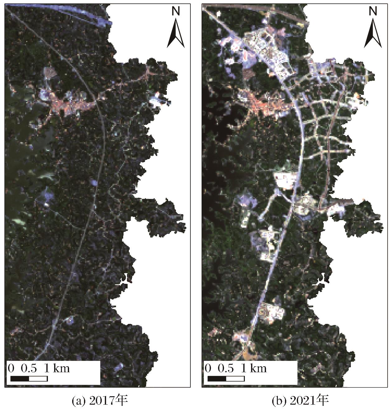 图6 2017年与2021年三岔湖景区局部对比图 |