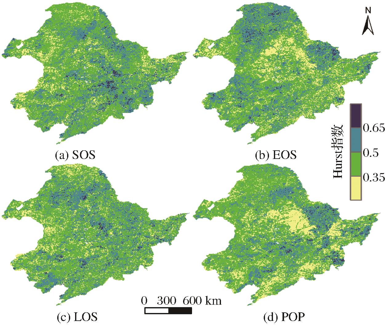 | 图7 2001~2020年东北地区植被物候参数(Hurst指数空间分布) 审图号:GS(2016)2885 |
