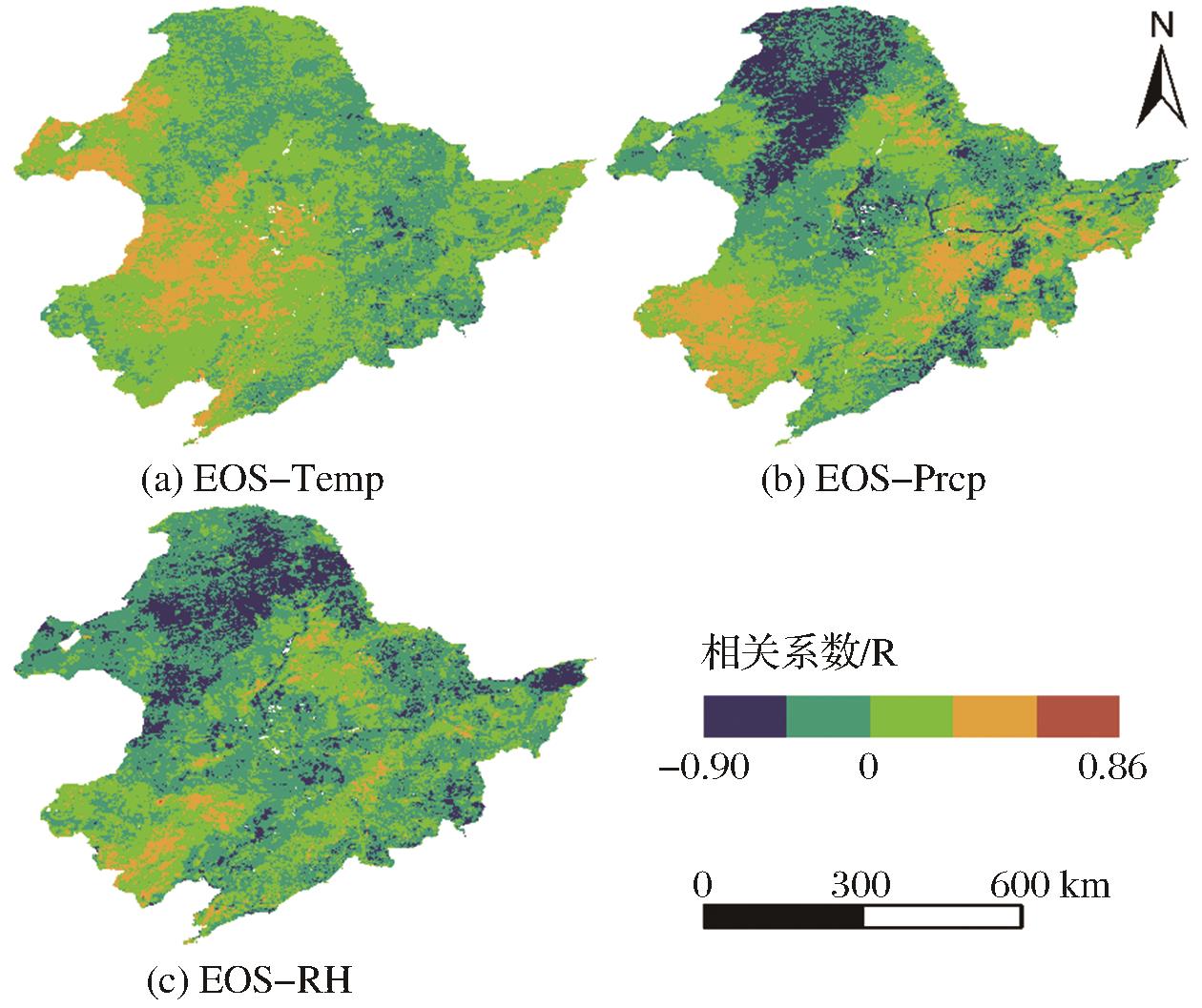 | Fig.12 Distribution of correlation coefficient between EOS and climate in Northeastern China from 2001 to 2020 |