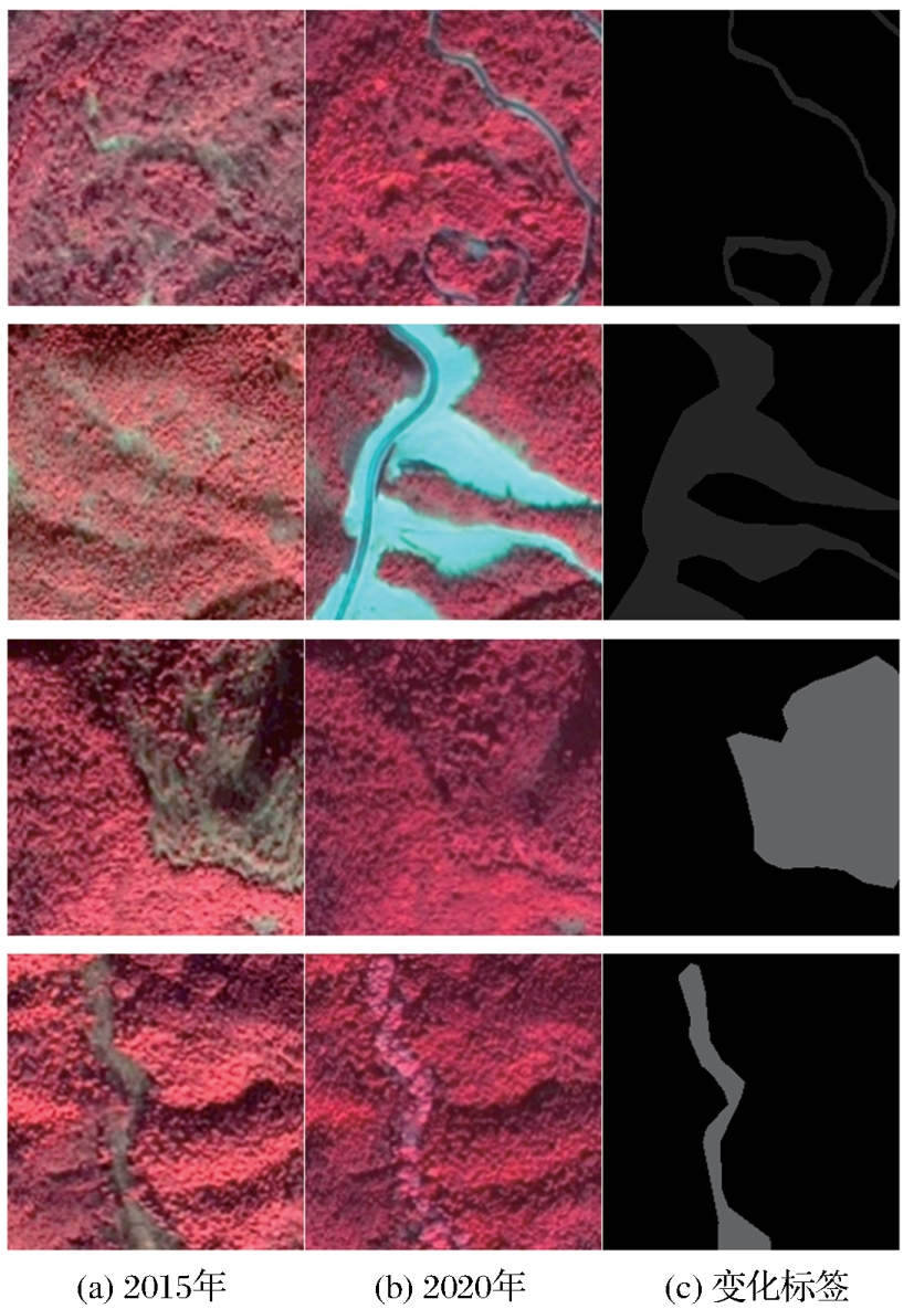 图2 数据集样例 (标签值:0-未变化,1-林地变化非林地,2-非林地变化林地) |