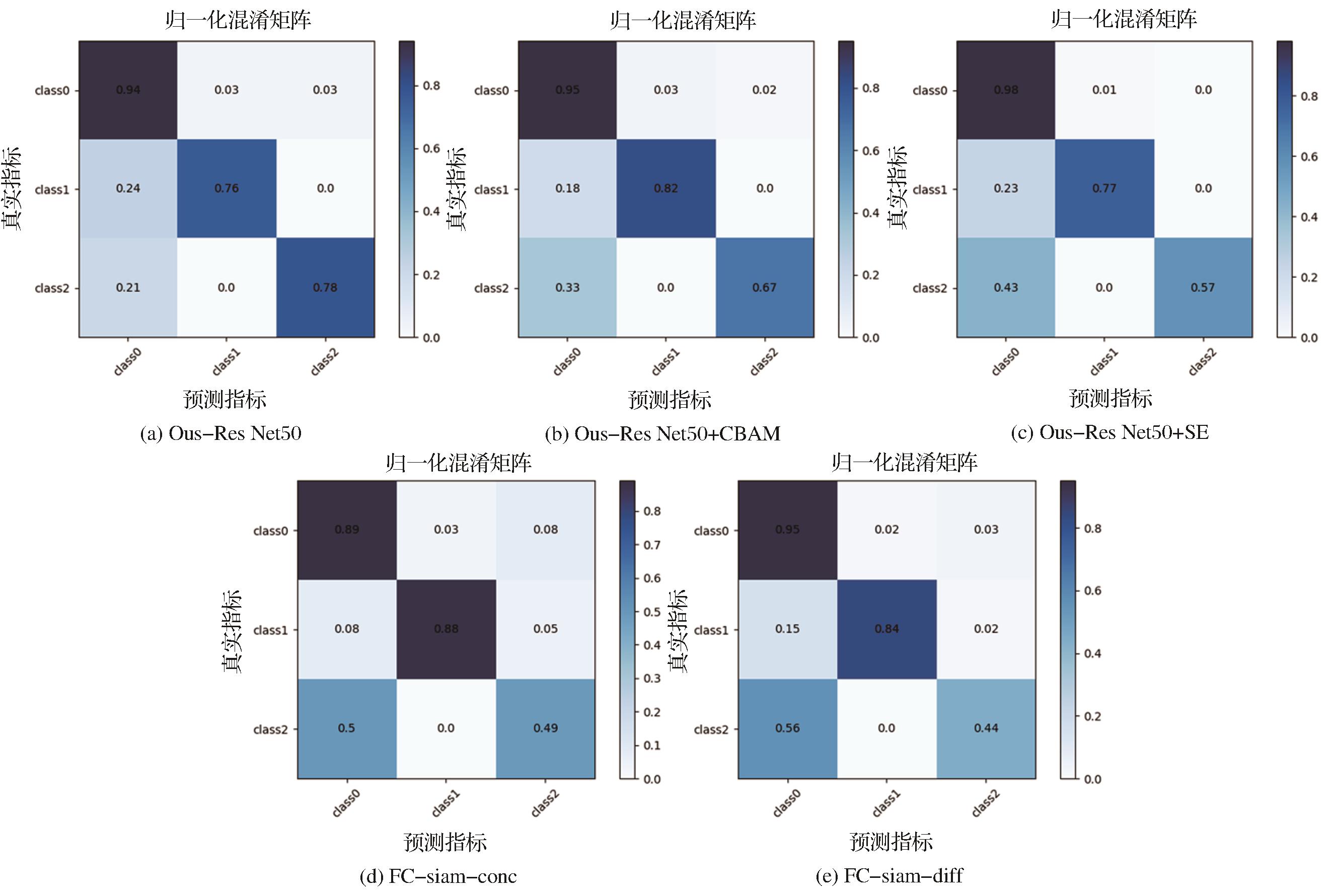 Fig.4 Normalized confusion matrix of various change detection methods |