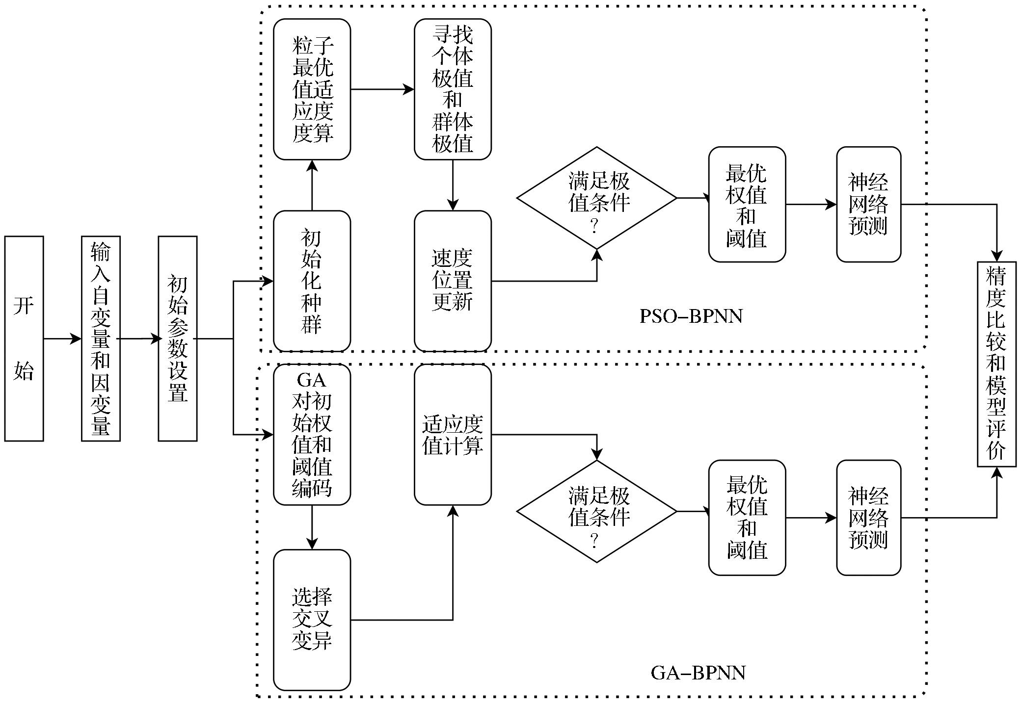 | 图2 PSO-BPNN和GA-BPNN模型流程图 |