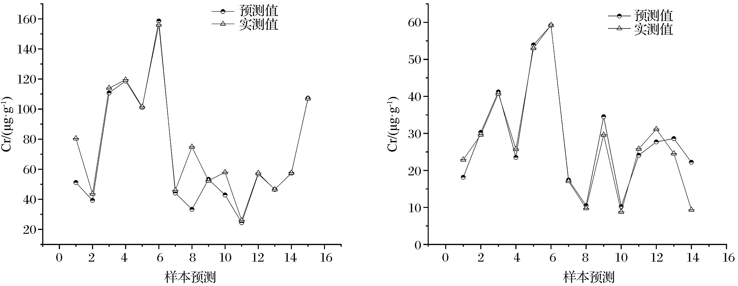 | 图5 土壤中Cu、Cr元素含量模型检验 |