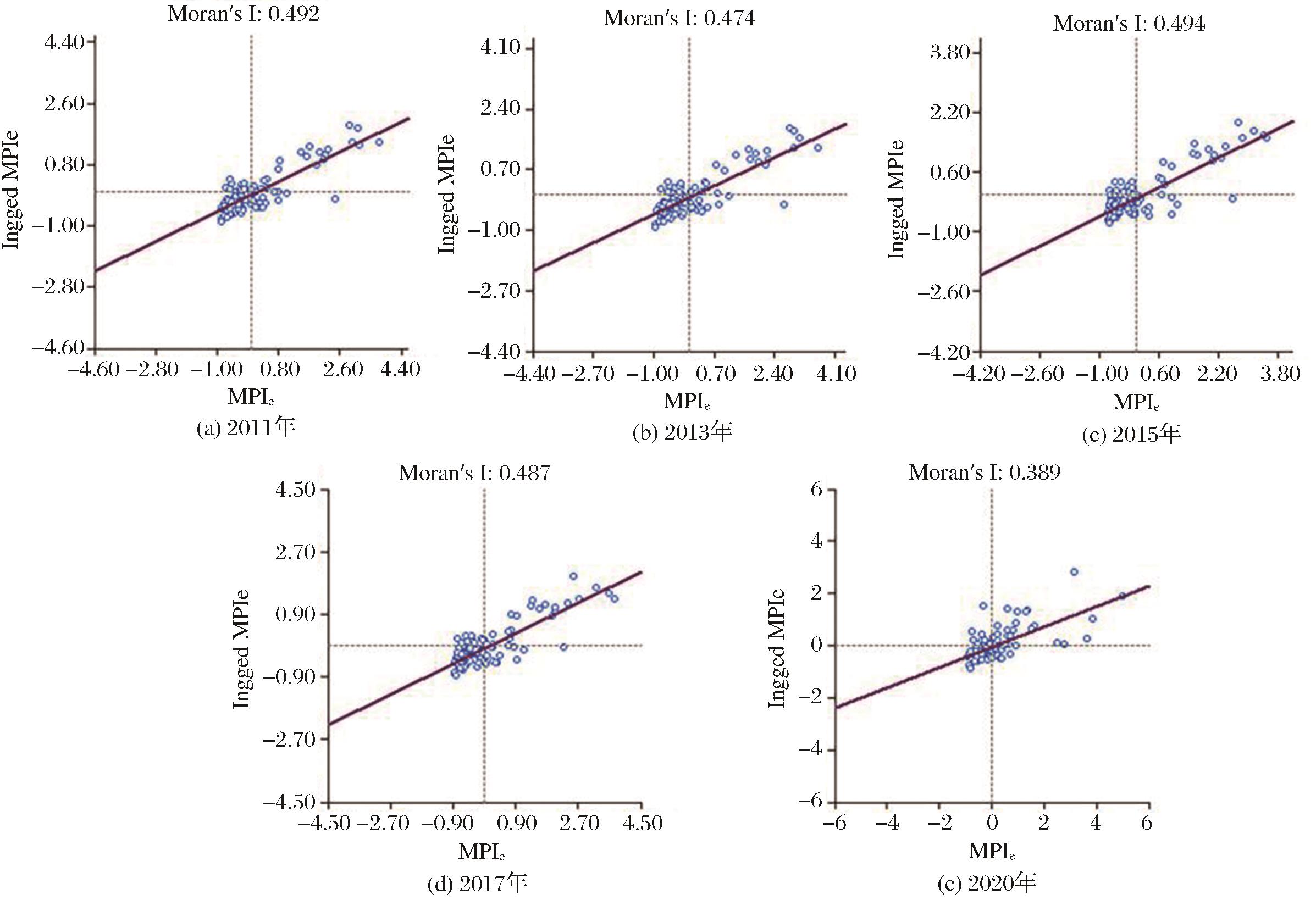Scatterplot of Moran′s I of multidimensional poverty 2011