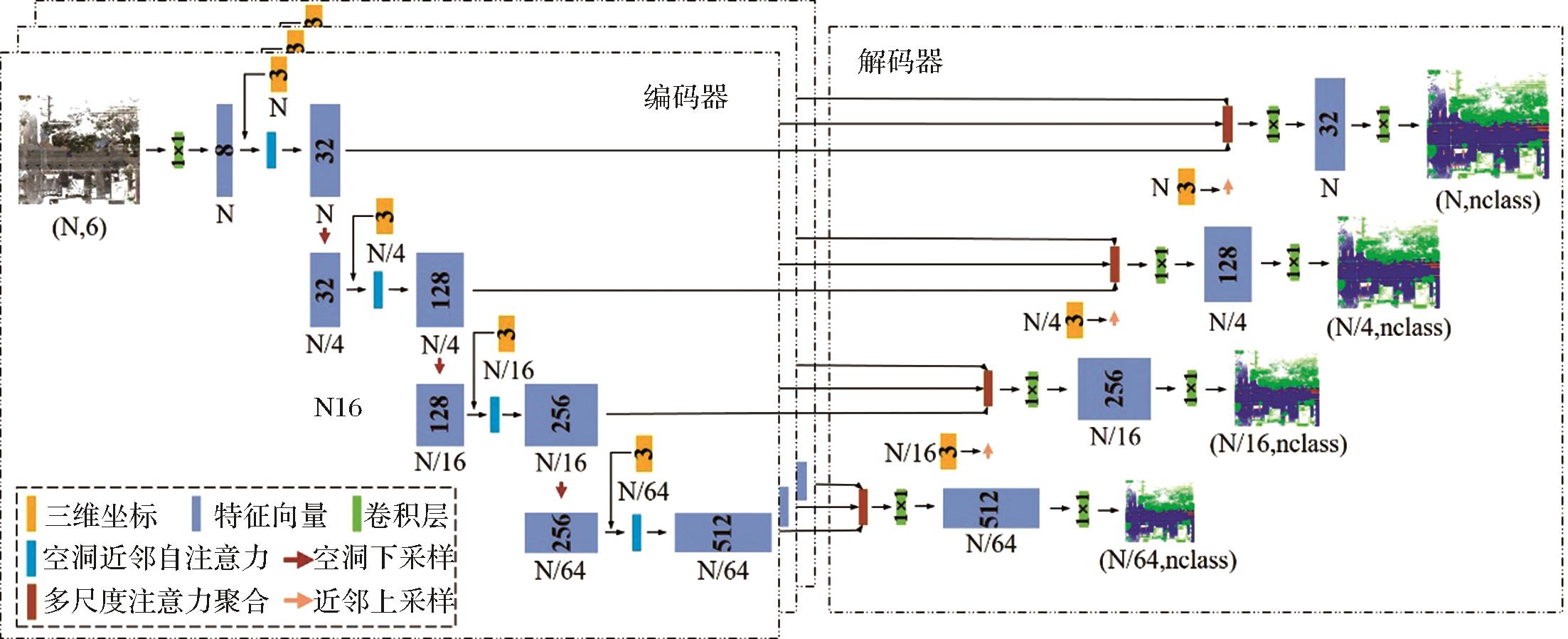 Network structure of 3D point cloud semantic segmentation based on deep-supervised multi-scale self-attention