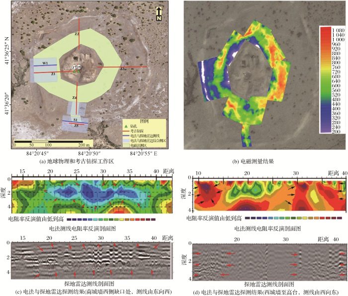 ... 地球物理勘测技术作为另外一种考古无损探测手段,能够探测地表以下含水量、电阻率、导电率、磁化率等物性参数,反映出遗址区地下的异常特征.20世纪80年代地球物理开始广泛用于考古研究[27,28],如刘士毅等[29]较早地利用地球物理技术开展秦始皇陵的地球物理勘探,探测出了地宫、墓室、墓道等的位置.林金鑫等[30]运用探地雷达、磁法、电磁法对西夏陵地下陪葬墓进行了综合勘测并发现了陪葬墓.沈鸿雁等[31]综合高密度电法与探地雷达方法对晋阳古城中城墙、护城河以及采空区进行物性分析.国外很多学者也应用地球物理技术在考古探测方面取得了进展[32,33,34]. ...