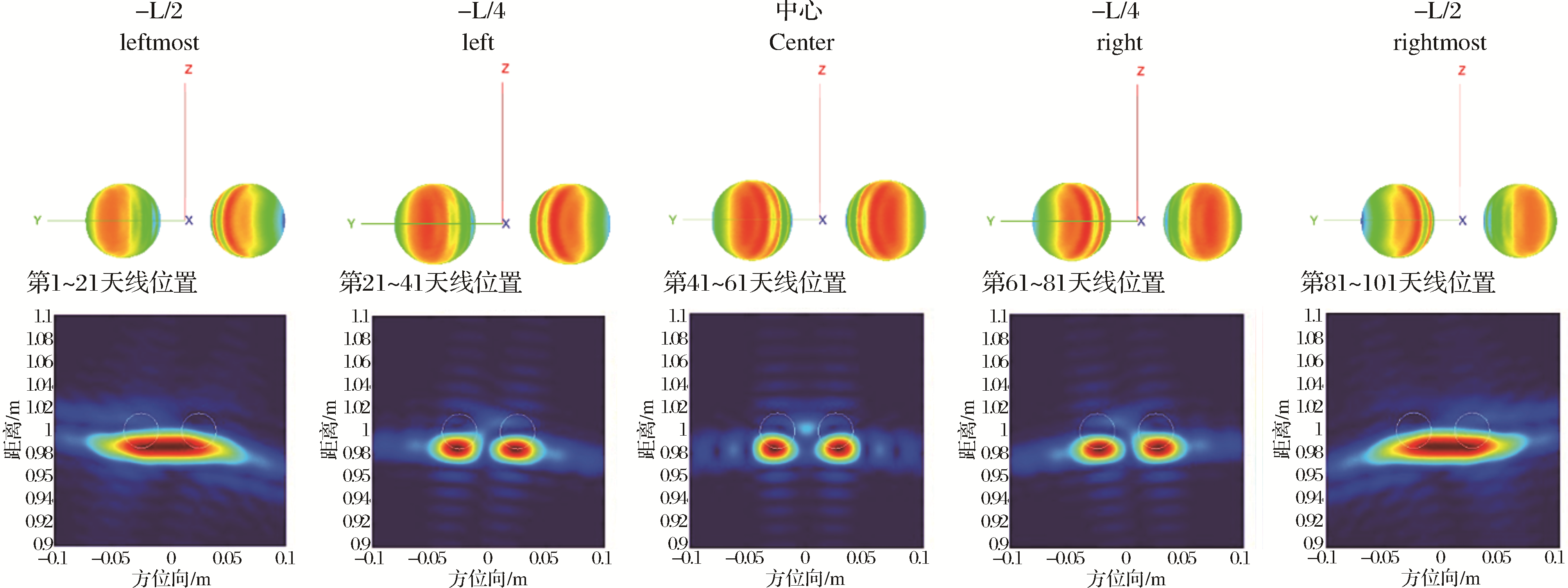 | 图6 金属双球表面等效电流分布与分段成像过程 |