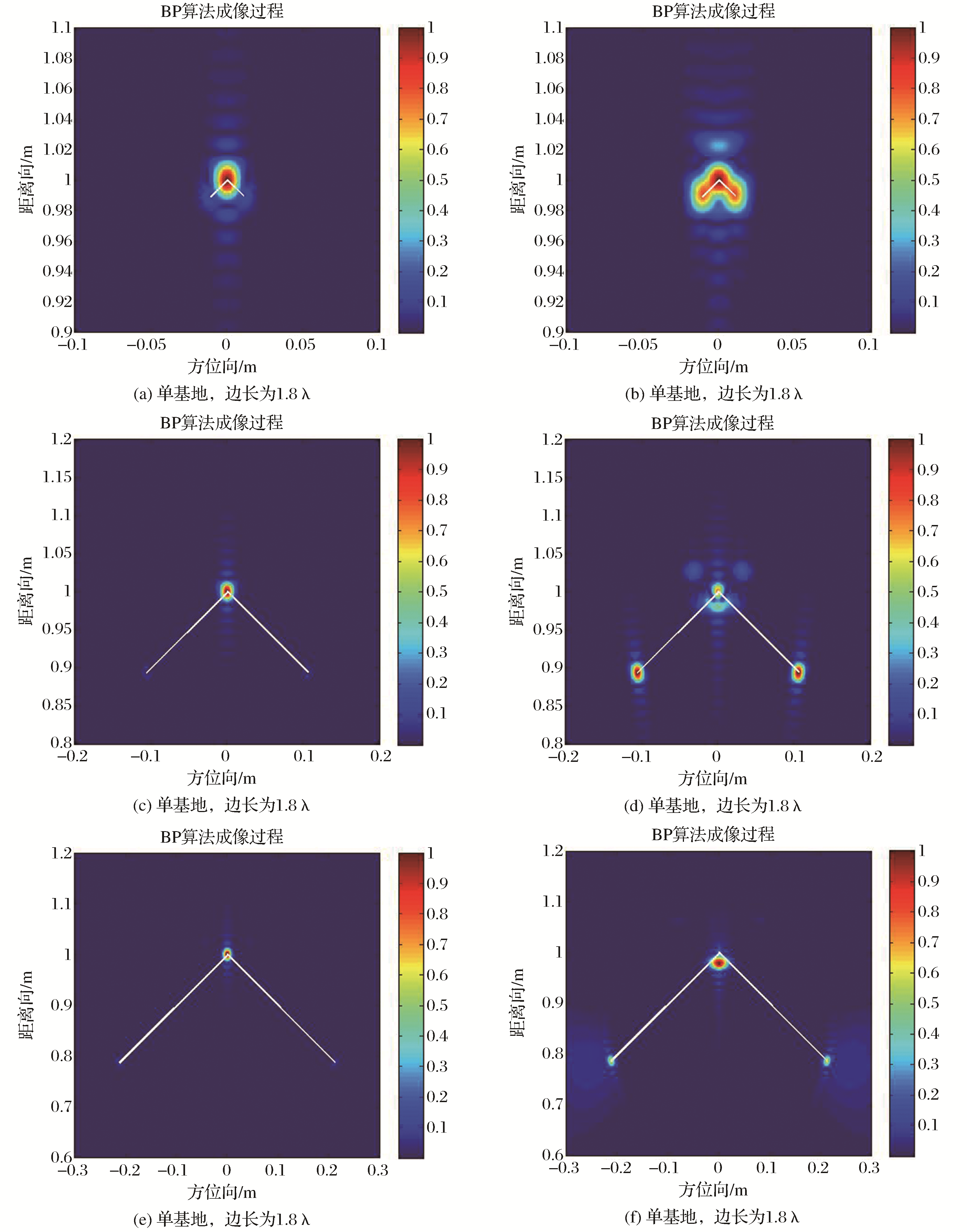 | Fig.8 Focused images of dihedral target in single/bistatic mode |