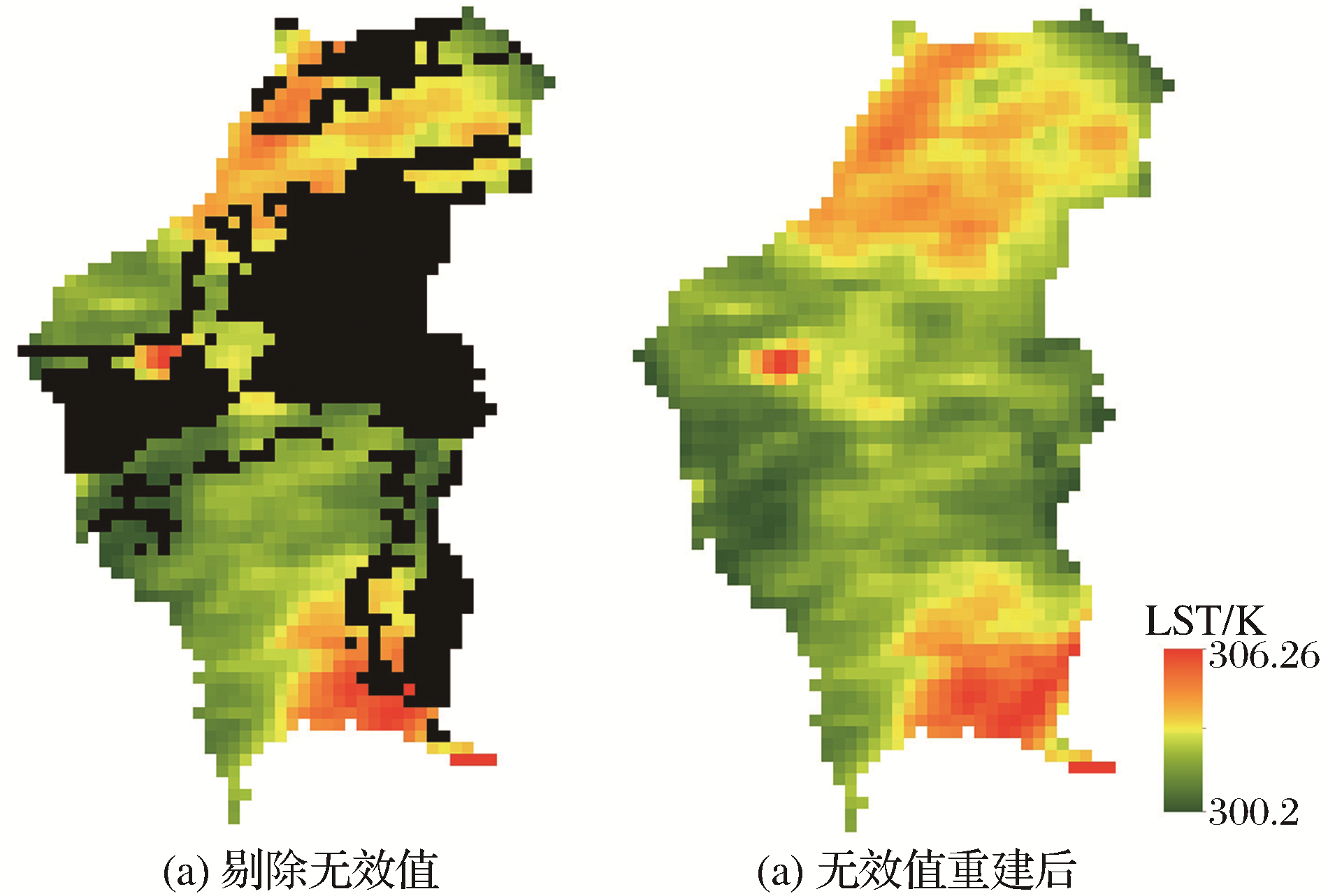 | 图2 MODIS 2014年第217天剔除无效值及地表温度影像. |