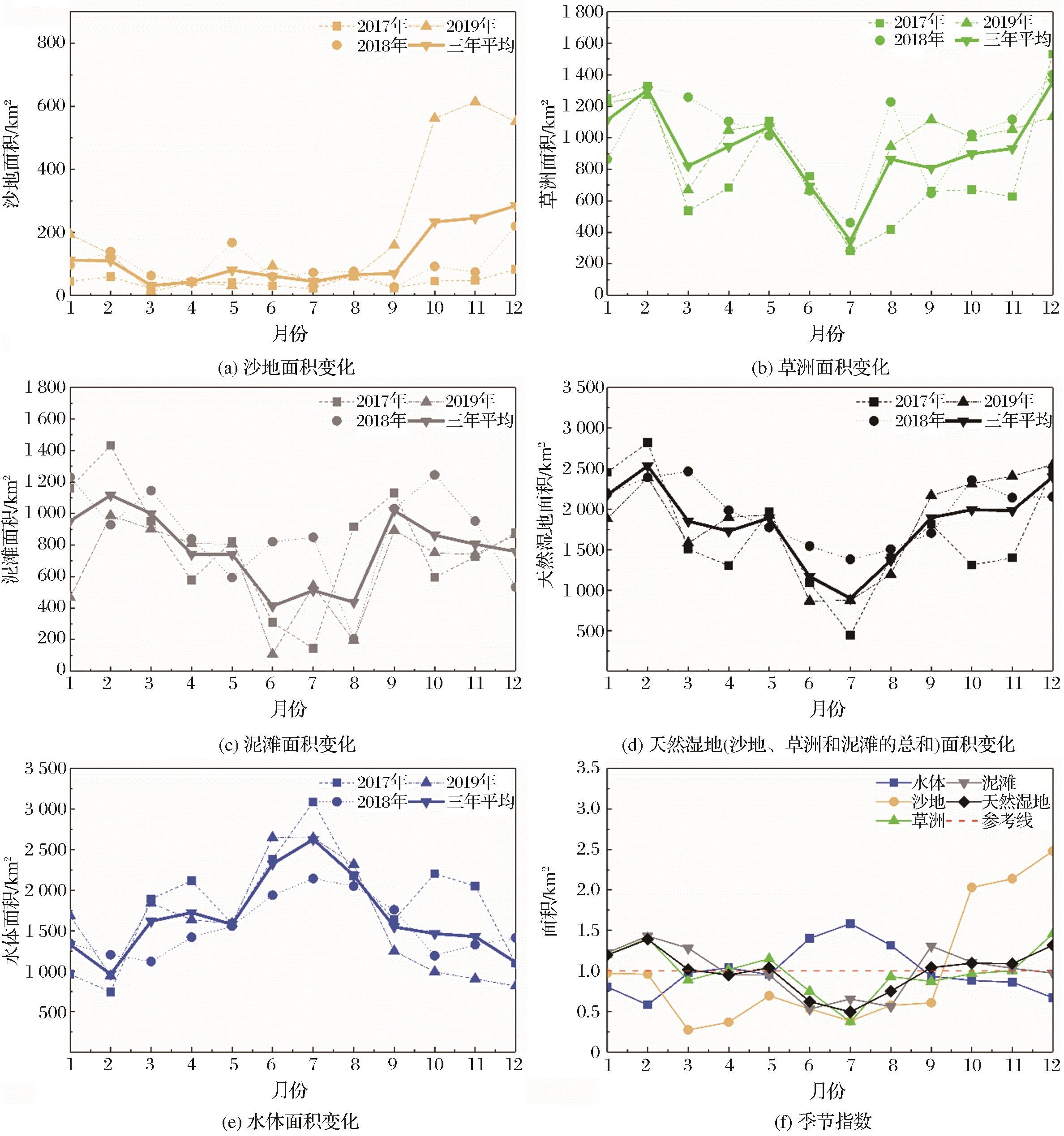 | 图8 鄱阳湖湿地2017~2019年不同类型面积变化 |