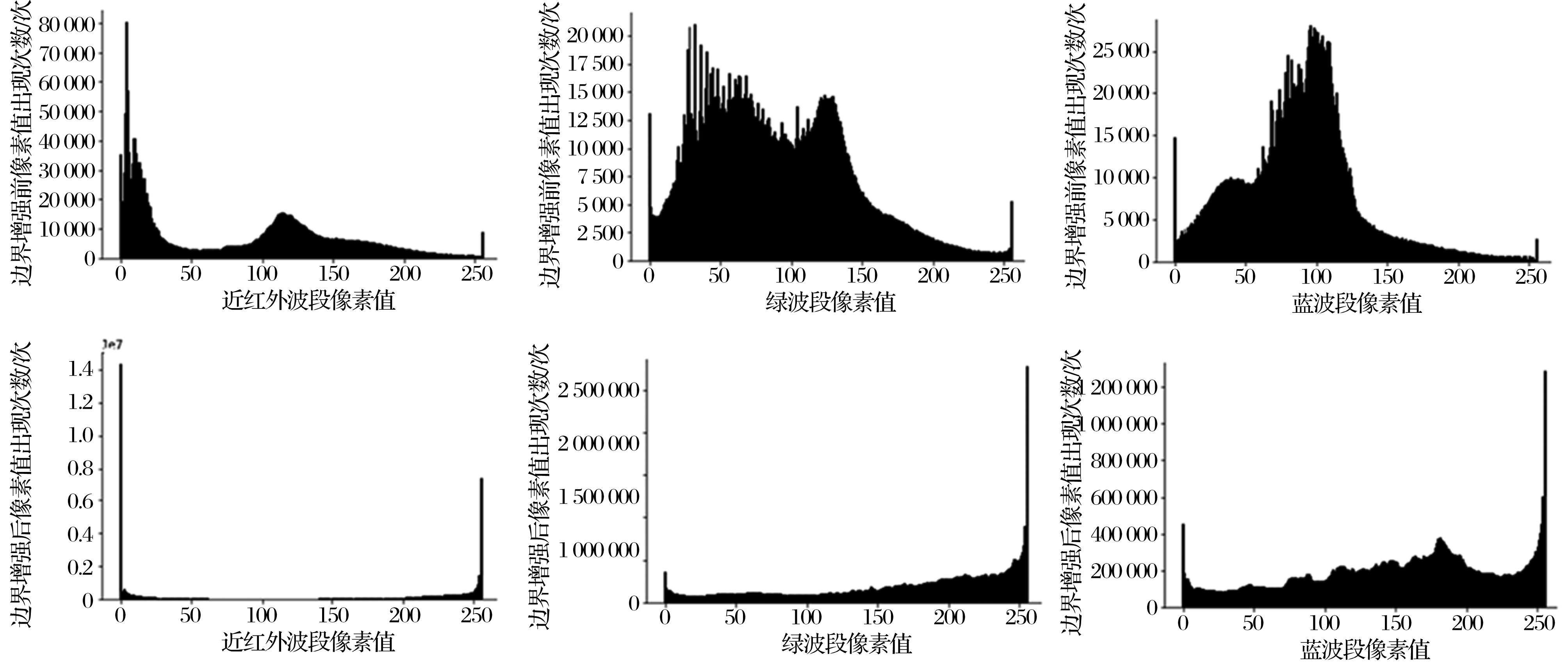 | Fig.3 The comparison of the pixel distribution before and after the boundary enhancement |