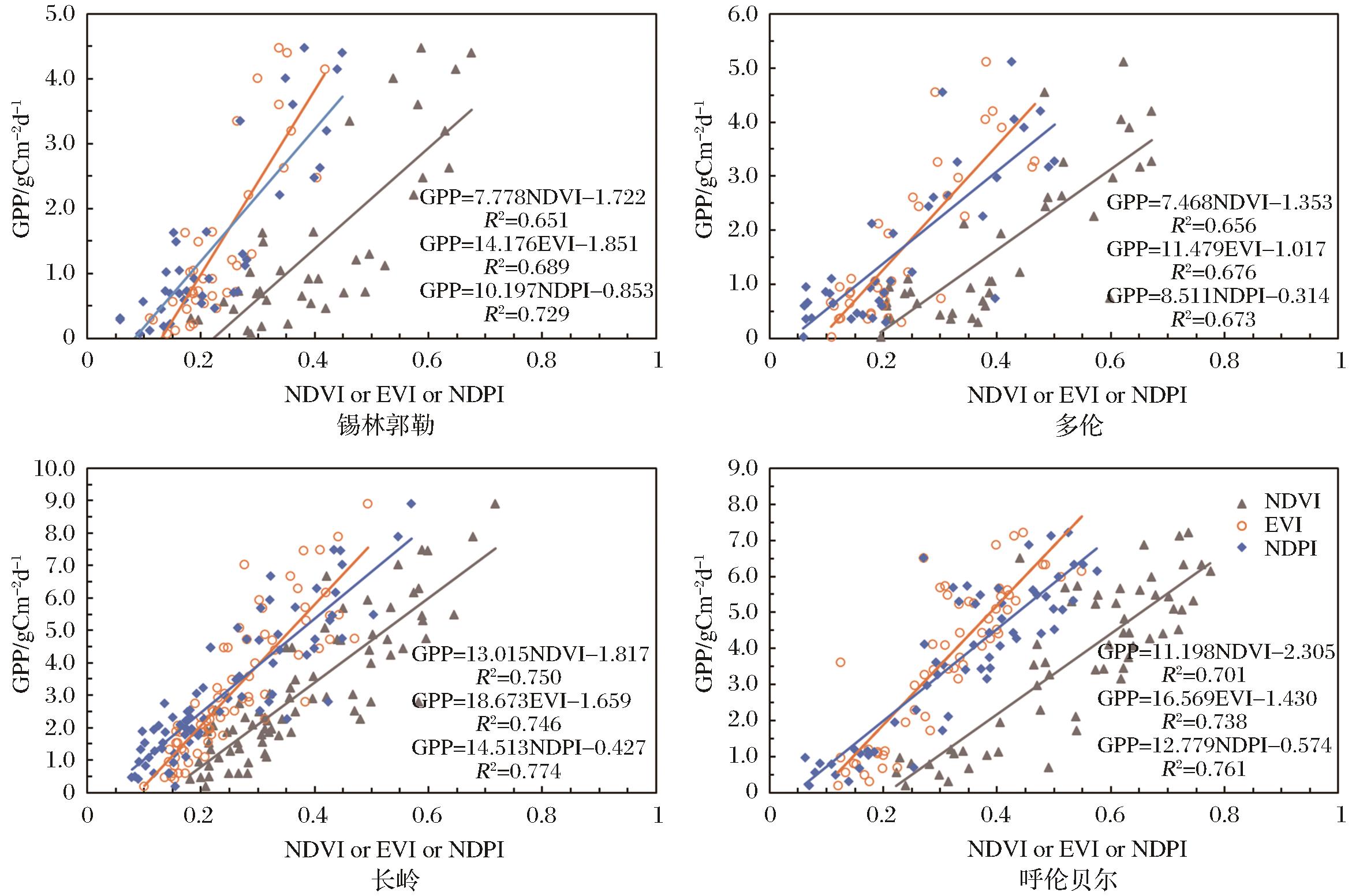 | 图2 植被指数与涡度GPP相关性分析 |