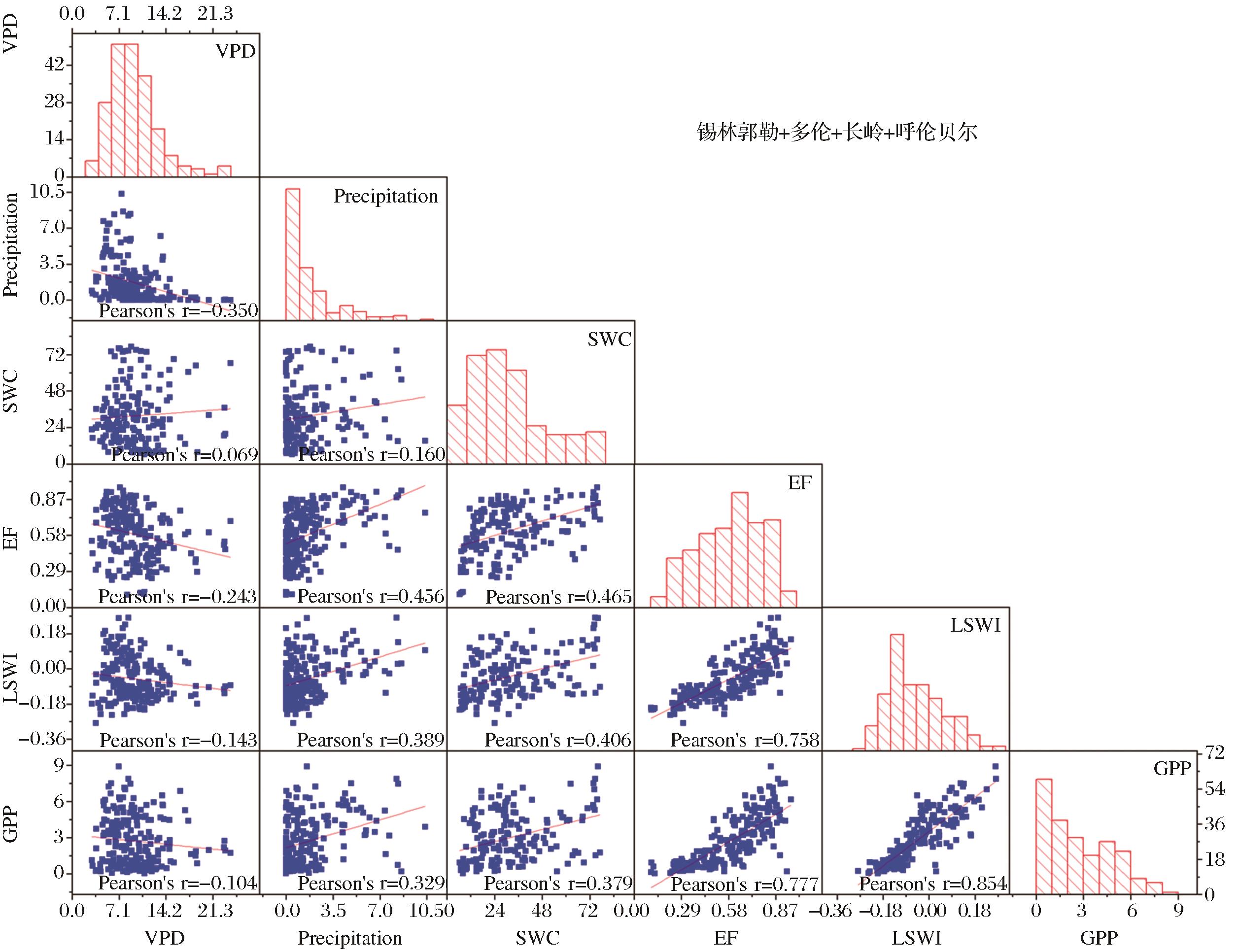 | 图4 东北草地通量站水分胁迫参数与GPP相关性矩阵 |