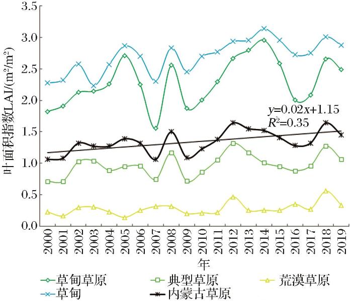 2000~2019年内蒙古草原及不同草原类型逐年LAI均值