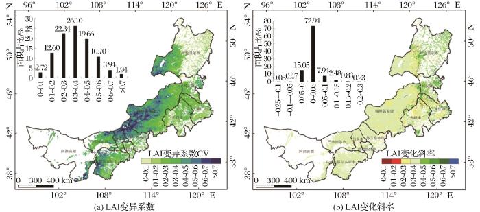 内蒙古草原LAI值变异系数及变化斜率分布图