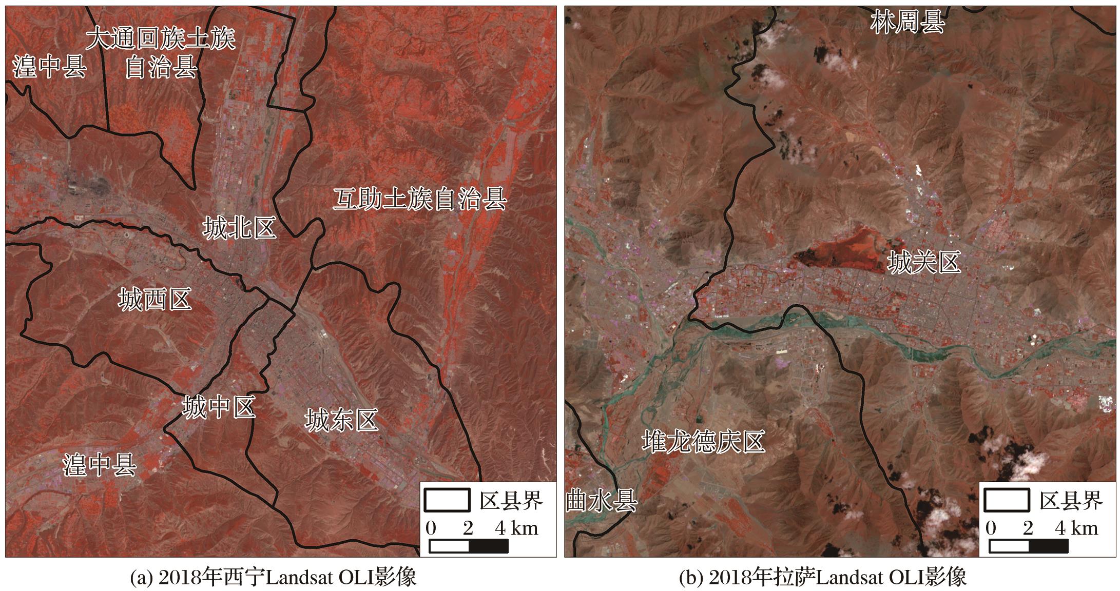 | 图1 西宁和拉萨遥感影像图 |