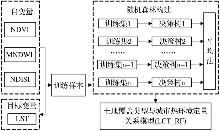 城市地表温度和地表生物物理组分之间存在复杂的潜在非线性关系,这使得准确评估城市热环境情况遇到了严峻的技术挑战。研究采用随机森林回归模型来模拟植被、水体和不透水面对地表温度的综合作用关系,建立土地覆盖类型与城市热环境定量关系模型 (Land Cover-LST Regression, LCT),并与传统的多元线性回归模型进行对比。