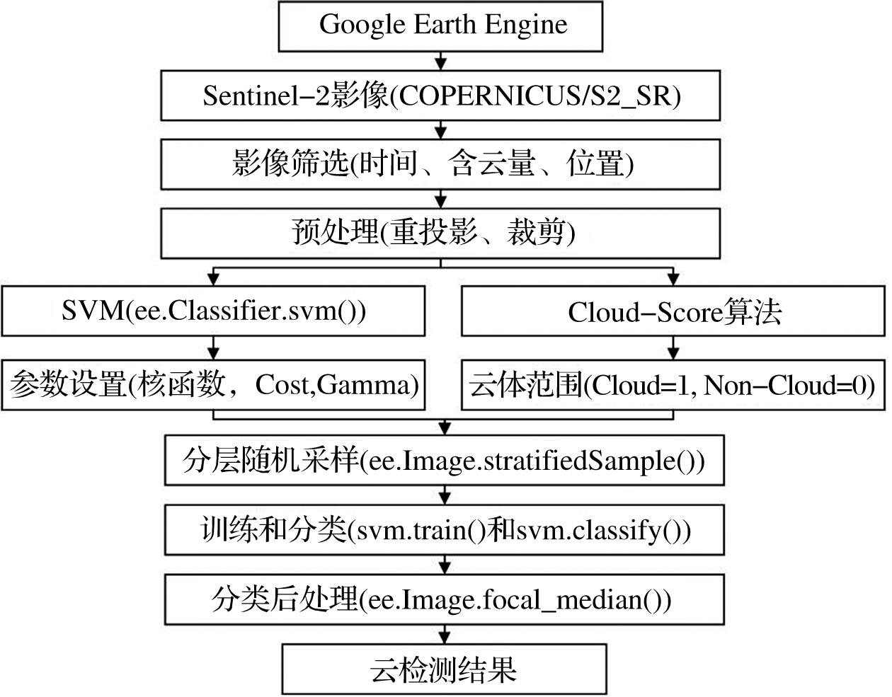 | 图2 耦合SVM和Cloud-Score算法的云检测模型 |