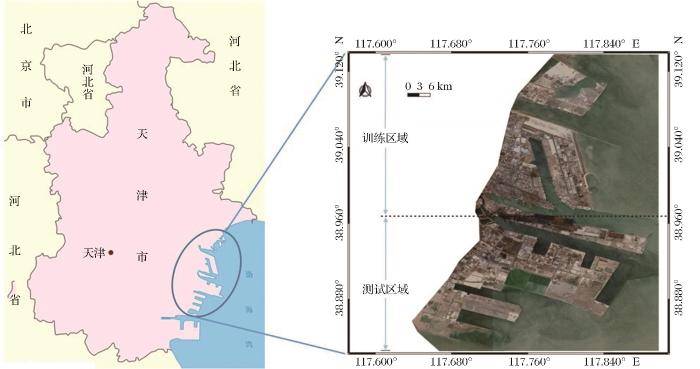 使用Google Earth 2016年3月10日和2020年3月23日获取的两景高分辨率遥感卫星影像,空间分辨率为1.86 m,包含R、G、B 3个波段,使用ENVI5.3软件对影像进行几何校正与辐射校正。影像区域被划分为训练区域和测试区域,两区域均含有居民区、工业园区、物流园区、港口等地物类型,由专家目视解译确定地物类型标记,将单一大型建筑的所在区域、多个空间临近的建筑形成的区域、港口、集装箱/货物堆场等地物标记为已利用土地。对有人工建造痕迹但不属于上述已利用土地的裸地,查看后时相影像,是否已变为已利用土地,若是,则为已利用土地,否则为未利用土地,若无后时相影像,则视为未利用土地,其他荒草地、沙地、盐碱地、裸土地等标记为未利用土地。