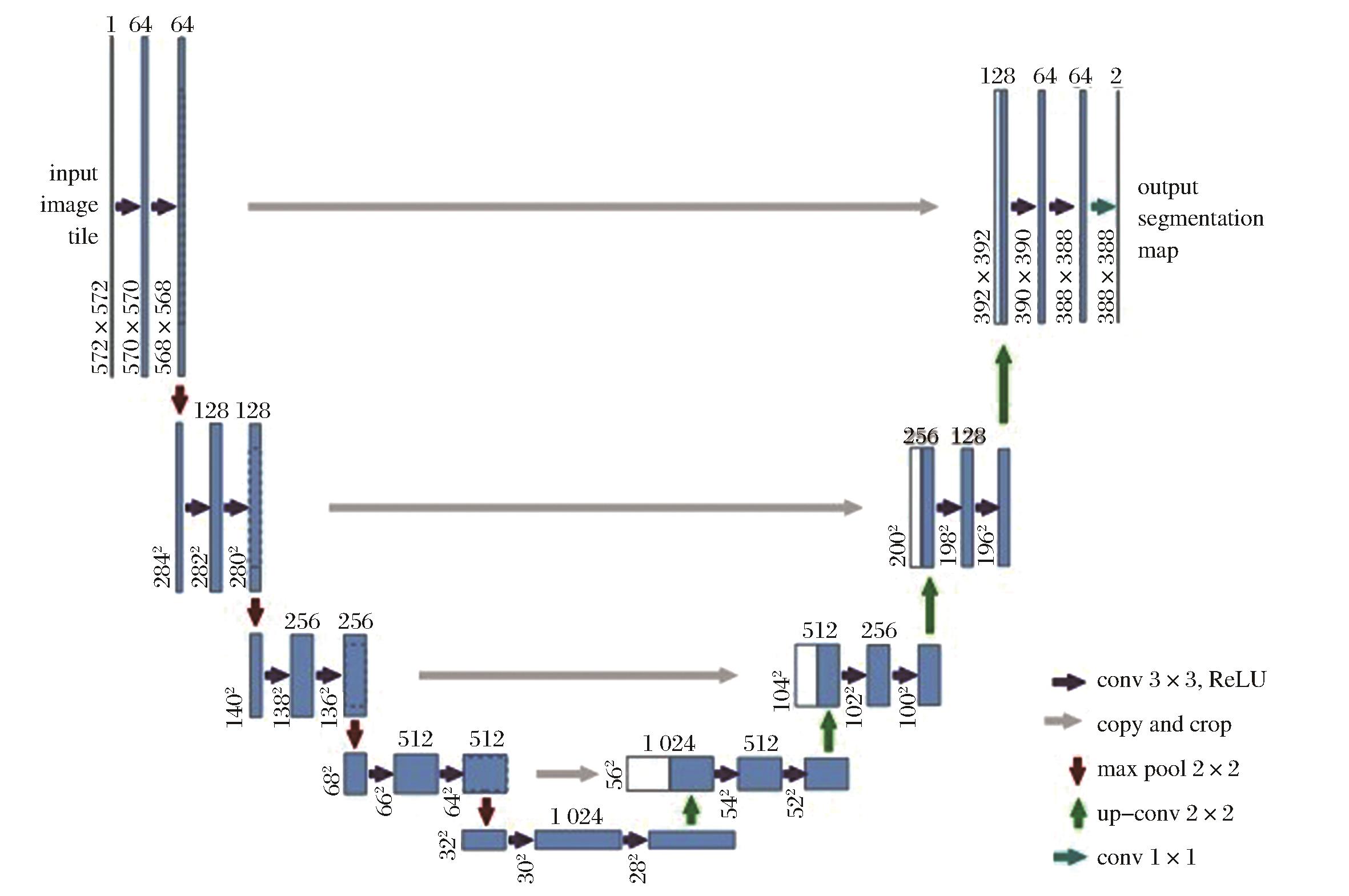 | 图1 经典U-Net网络结构[ |