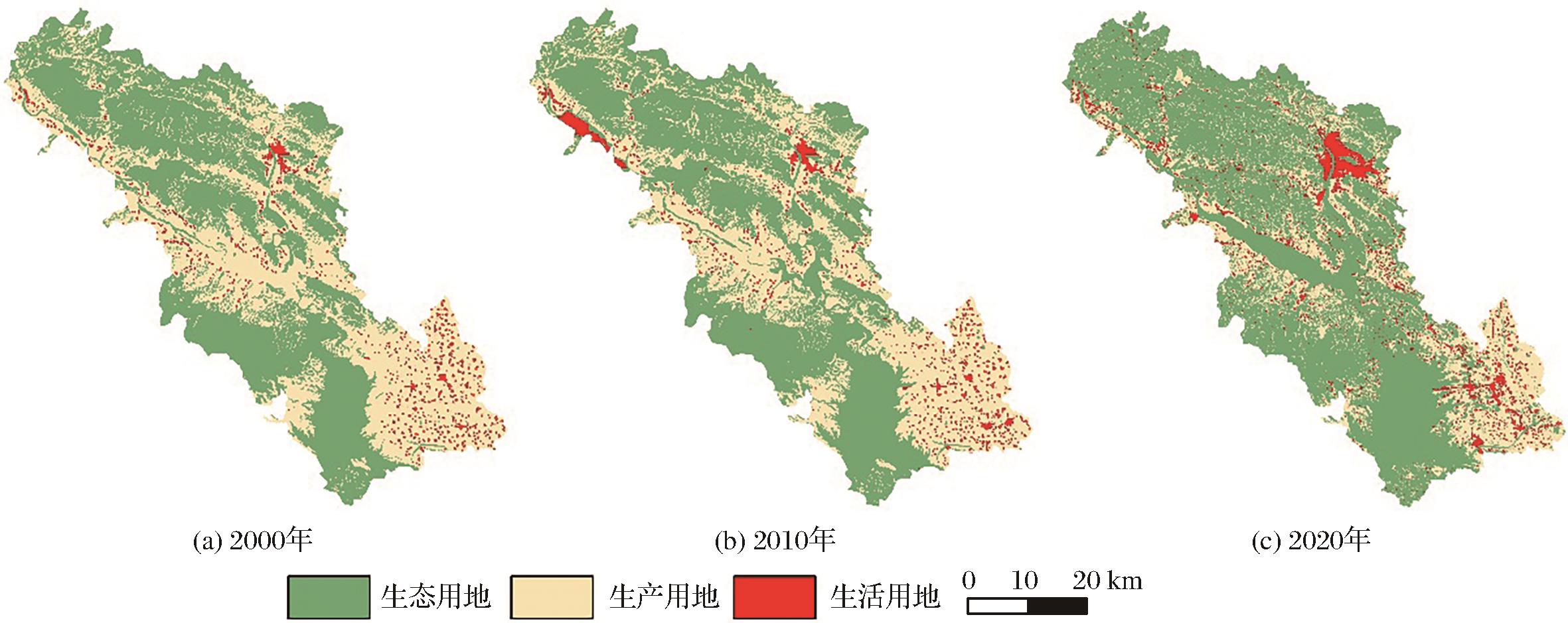 | 图3 2000—2020年淅川县三生空间格局分布图 |