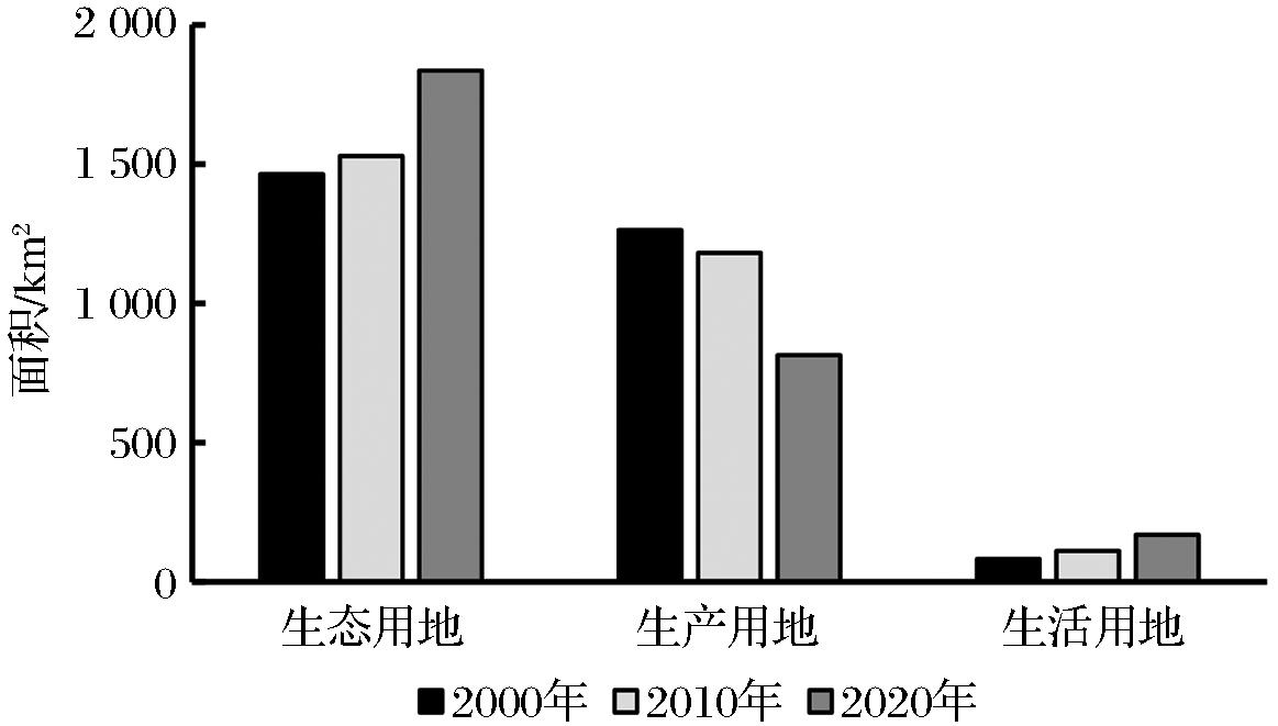 | 图4 2000—2020年淅川县“三生用地”面积统计 |