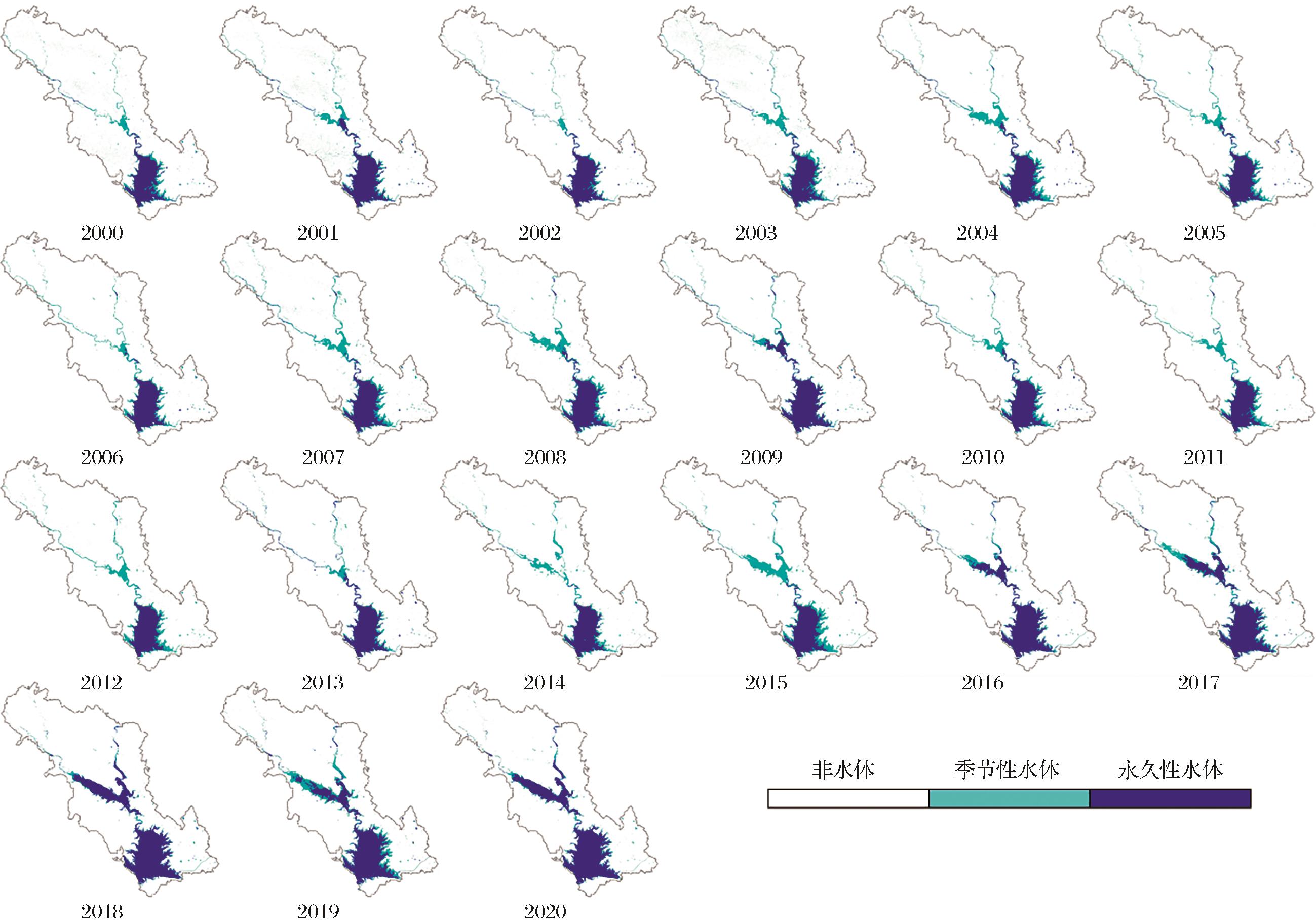 | 图5 2000—2020年淅川县地表水体空间分布图 |