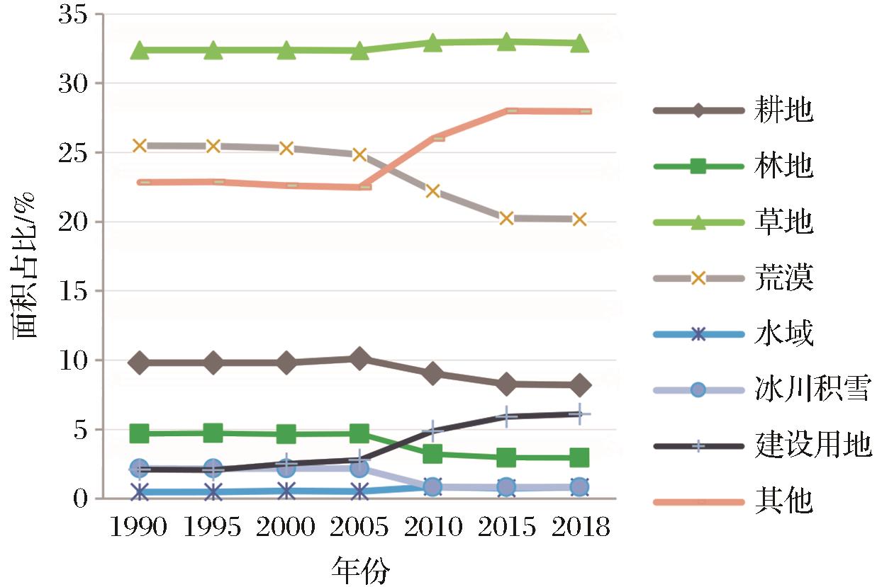 | Fig.3 Area ratio of land use types in Urumqi main urban area from 1990 to 2018 |