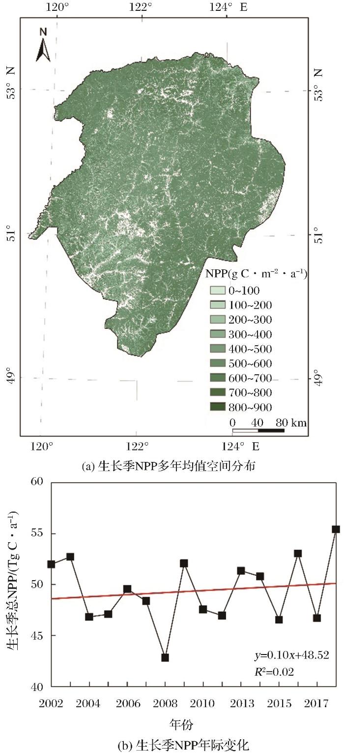 2002~2018年大兴安岭北段森林生长季NPP