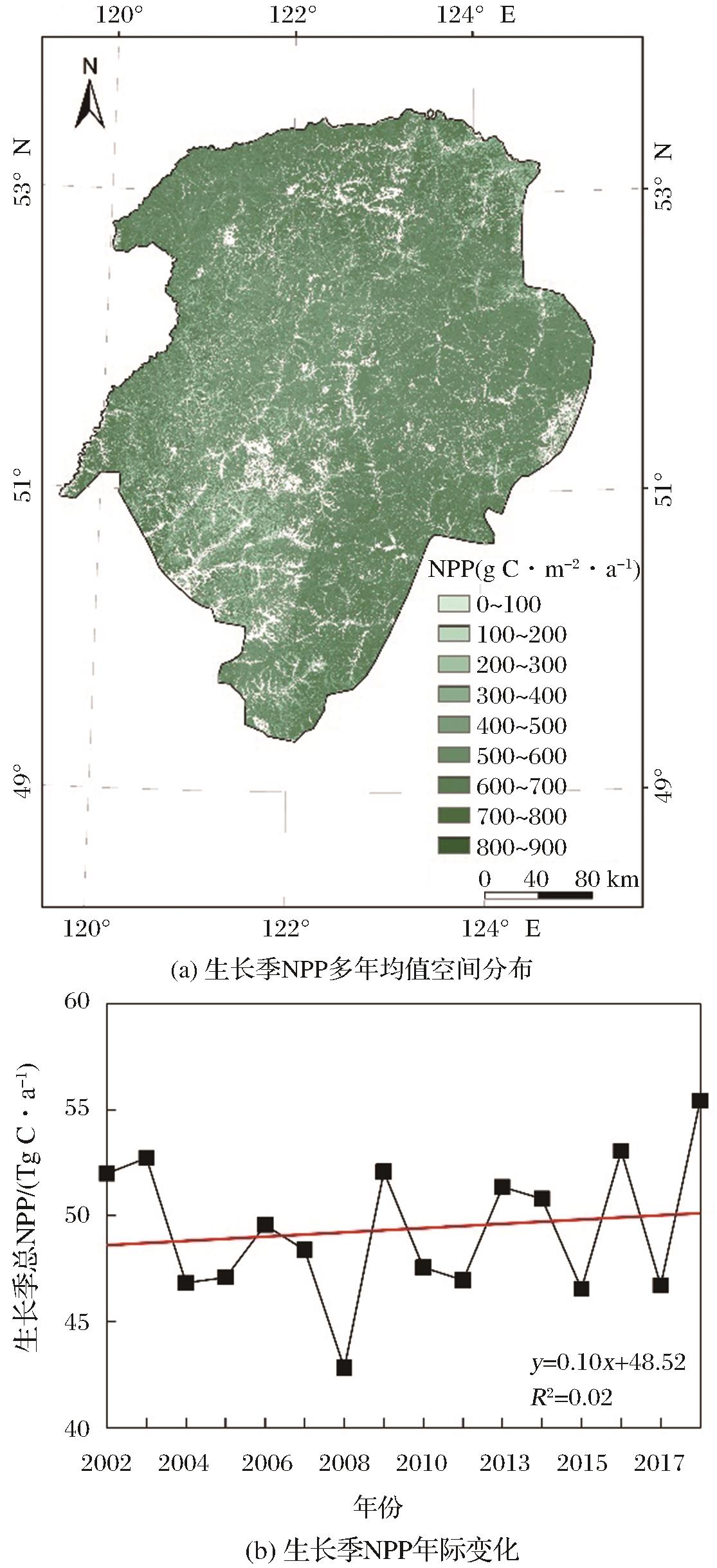 | 图4 2002~2018年大兴安岭北段森林生长季NPP |