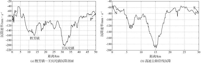 Subsidence rate profile of Shengfang-Wangqingtuo and the highway