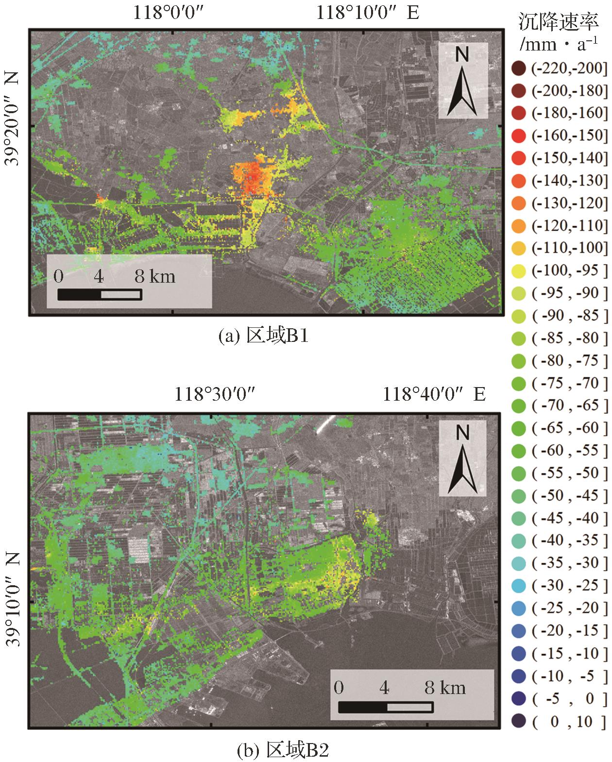 | 图8 区域B1、B2地面沉降 |